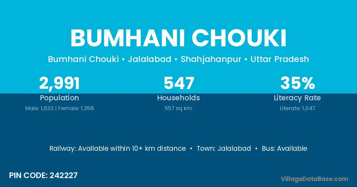Jalalabad is the nearest town to Bumhani Chouki village for major economic activities