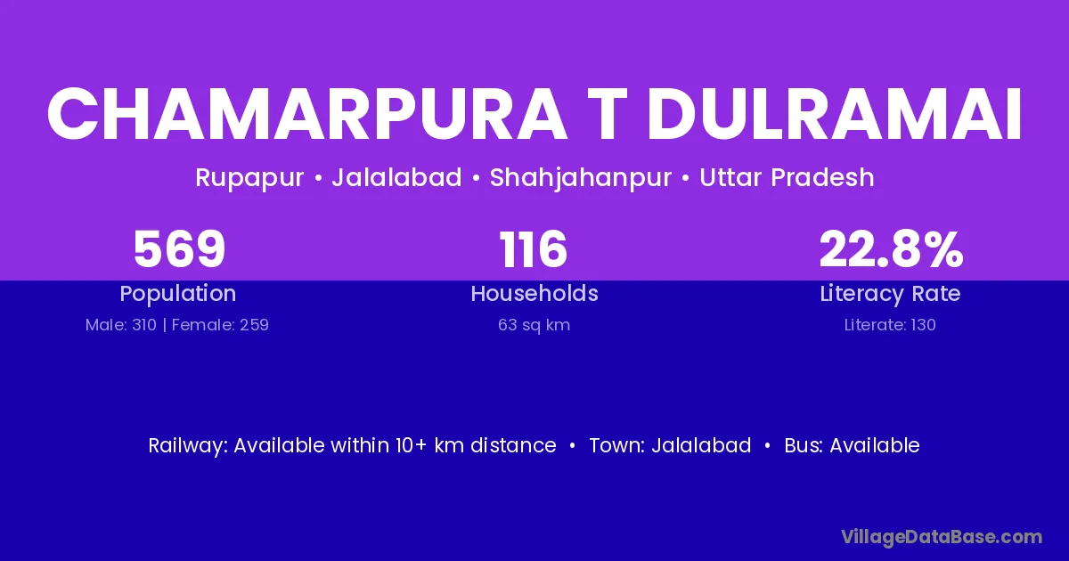 Chamarpura T Dulramai village is located in the Jalalabad Tehsil of the Shahjahanpur district in Uttar Pradesh .