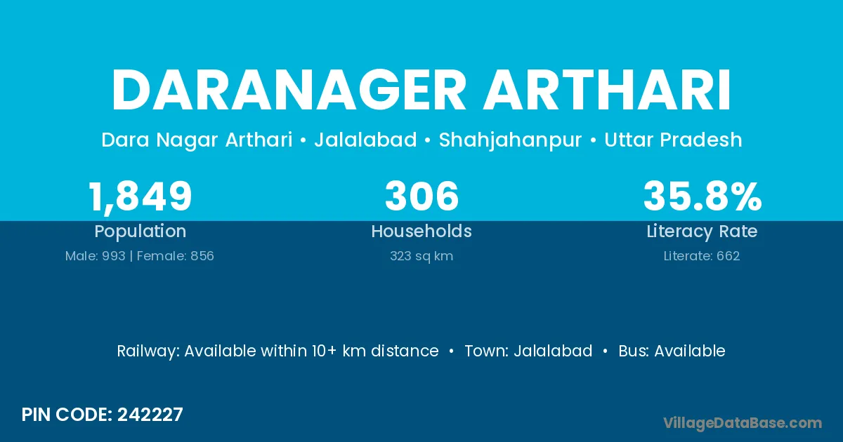 Daranager Arthari village has a total population of 1,849 people, of which 993 are males and 856 are females.