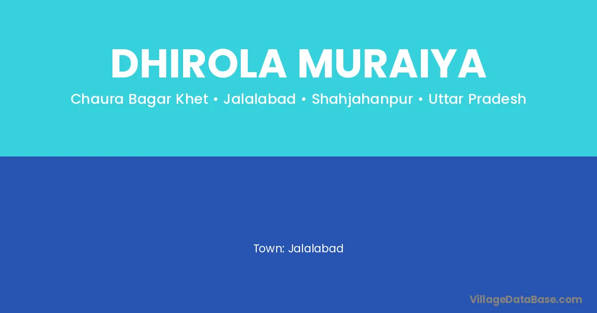 Jalalabad is the nearest town to Dhirola Muraiya village for major economic activities