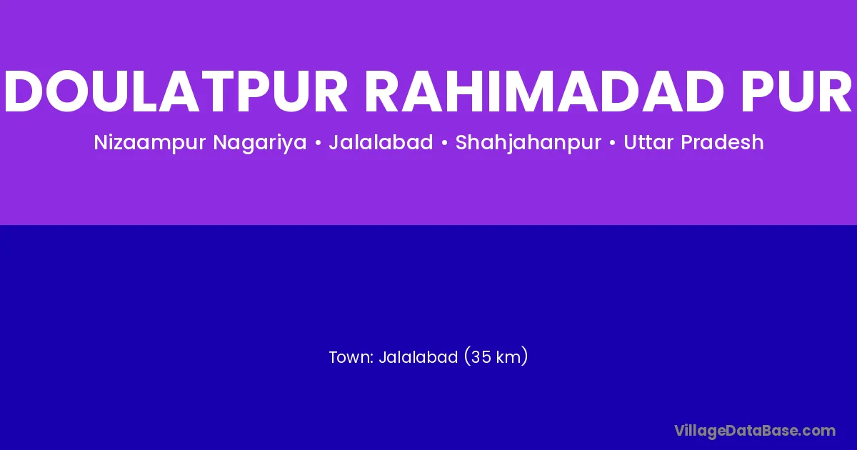 Jalalabad (35 km) is the nearest town to Doulatpur Rahimadad Pur village for major economic activities and is located approximately 35 km away.