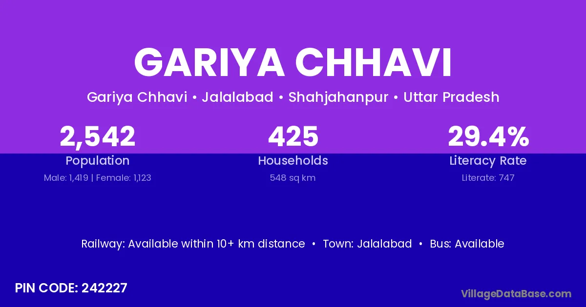 Gariya Chhavi village is located in the Jalalabad Tehsil of the Shahjahanpur district in Uttar Pradesh .