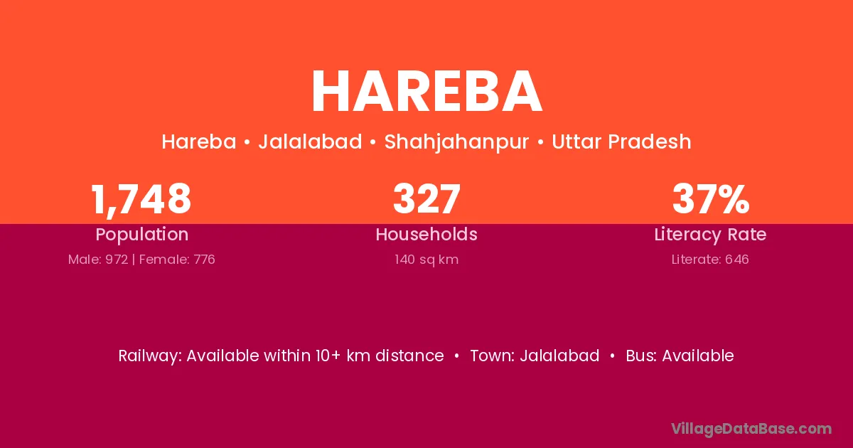 Hareba village is located in the Jalalabad Tehsil of the Shahjahanpur district in Uttar Pradesh .