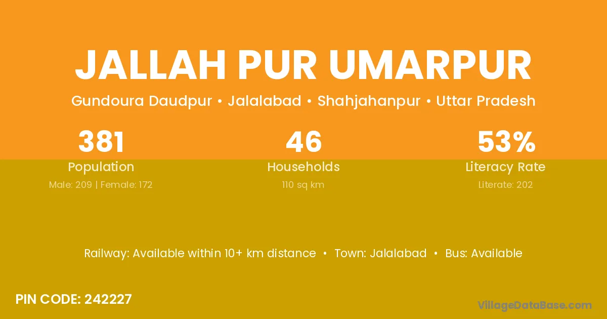 Jallah Pur Umarpur village is located in the Jalalabad Tehsil of the Shahjahanpur district in Uttar Pradesh .