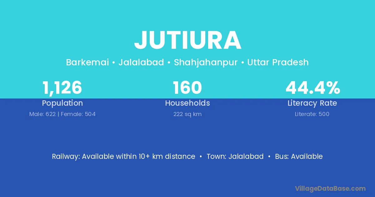 Jutiura village has a total population of 1,126 people, of which 622 are males and 504 are females.