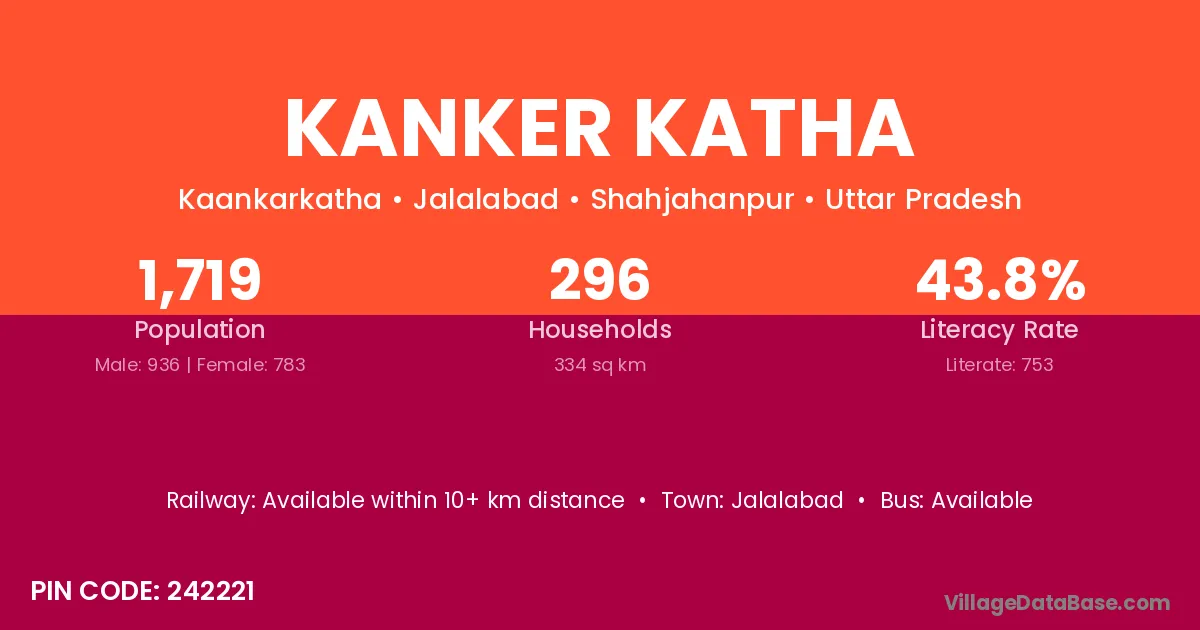 Kanker Katha village has a total population of 1,719 people, of which 936 are males and 783 are females.