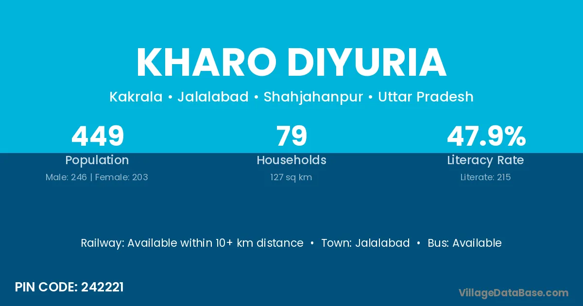 Jalalabad is the nearest town to Kharo Diyuria village for major economic activities