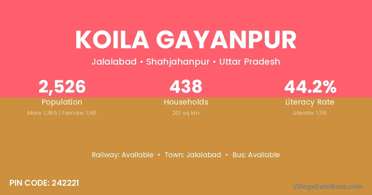 According to Census 2011 information, the village code of Koila Gayanpur village is 242221.