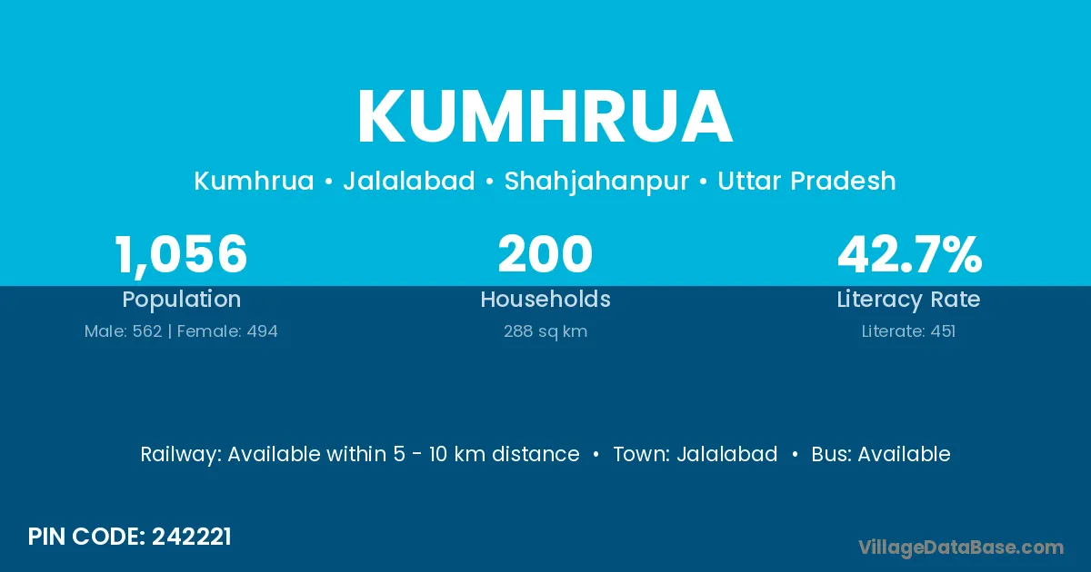 Jalalabad is the nearest town to Kumhrua village for major economic activities