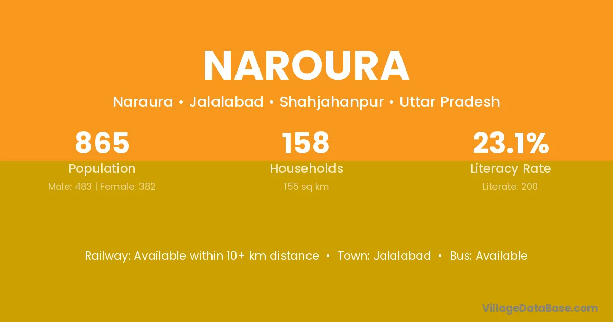 Naroura village has a total population of 865 people, of which 483 are males and 382 are females.