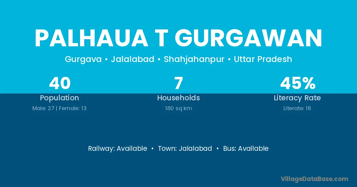 Palhaua T Gurgawan village has a total population of 40 people, of which 27 are males and 13 are females.