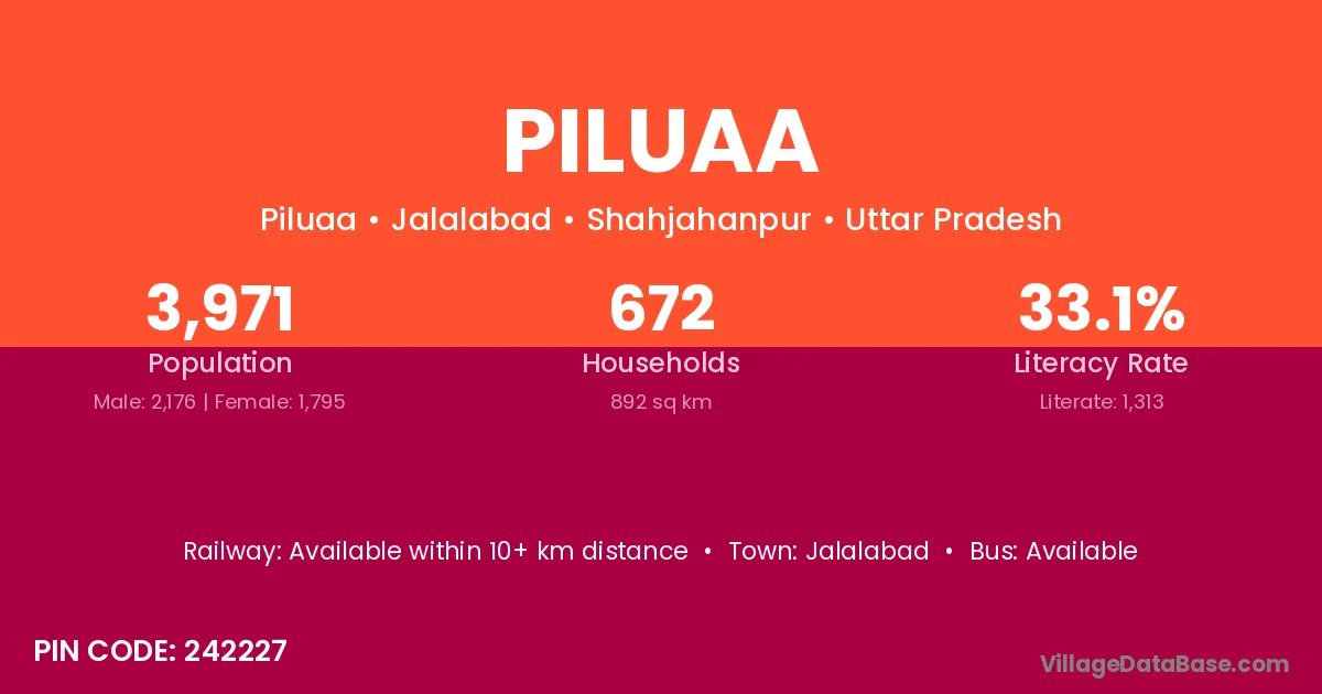 According to Census 2011 information, the village code of Piluaa village is 242227.