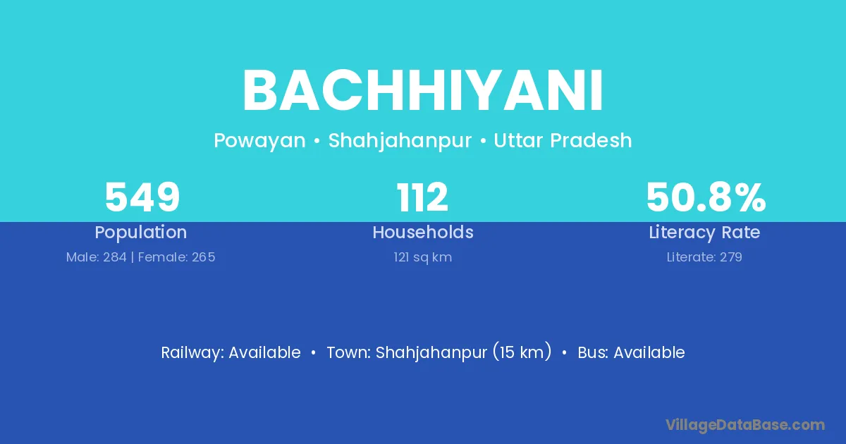 Shahjahanpur (15 km) is the nearest town to Bachhiyani village for major economic activities and is located approximately 15 km away.