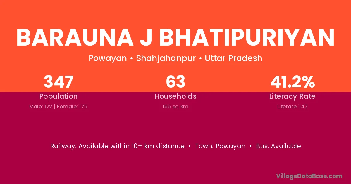 Barauna J Bhatipuriyan village has a total population of 347 people, of which 172 are males and 175 are females.