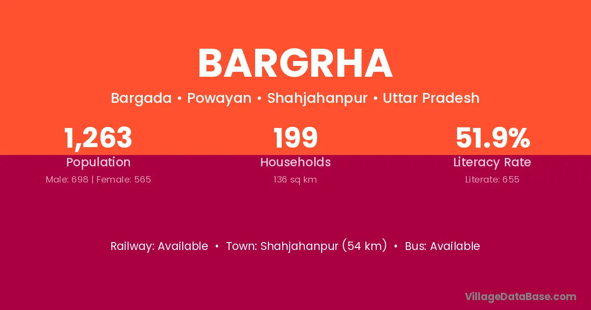 Shahjahanpur (54 km) is the nearest town to Bargrha village for major economic activities and is located approximately 54 km away.