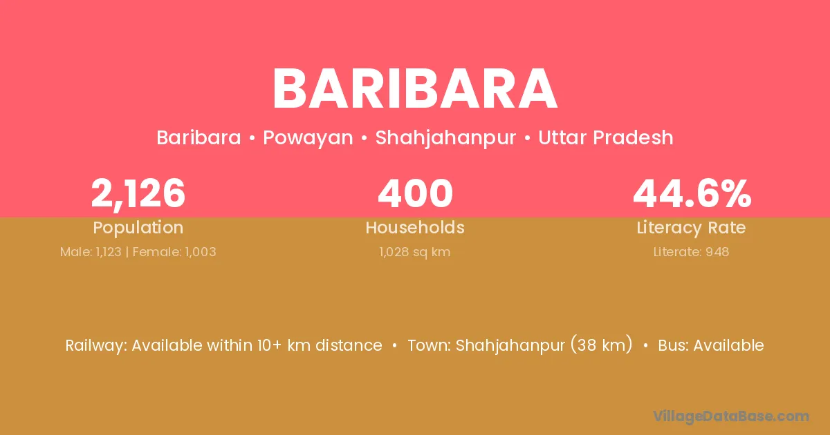 Shahjahanpur (38 km) is the nearest town to Baribara village for major economic activities and is located approximately 38 km away.