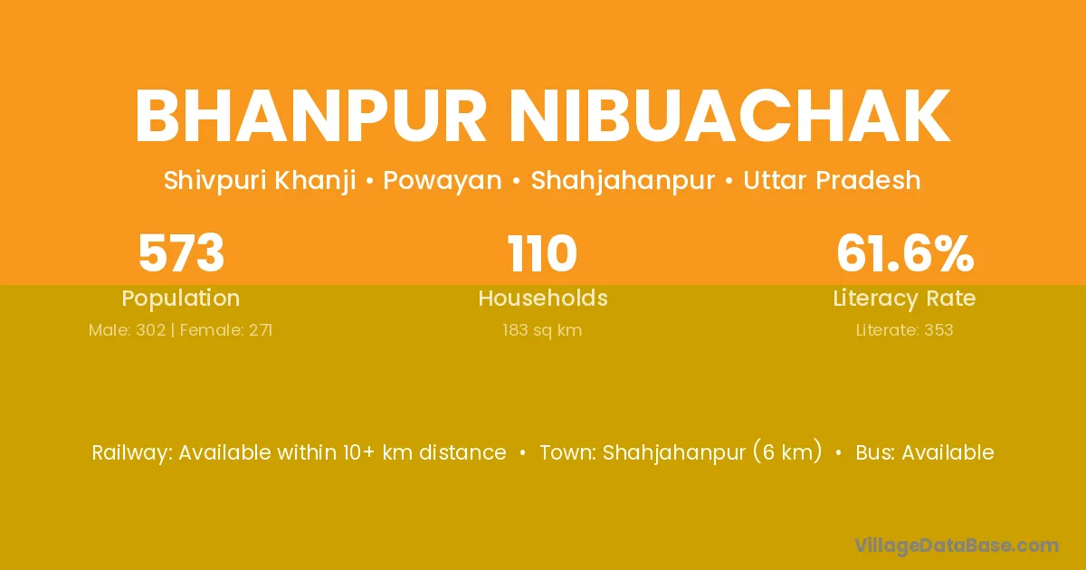 Bhanpur Nibuachak village has a total population of 573 people, of which 302 are males and 271 are females.