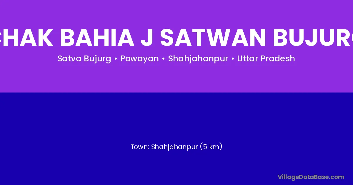 Shahjahanpur (5 km) is the nearest town to Chak Bahia J Satwan Bujurg village for major economic activities and is located approximately 5 km away.