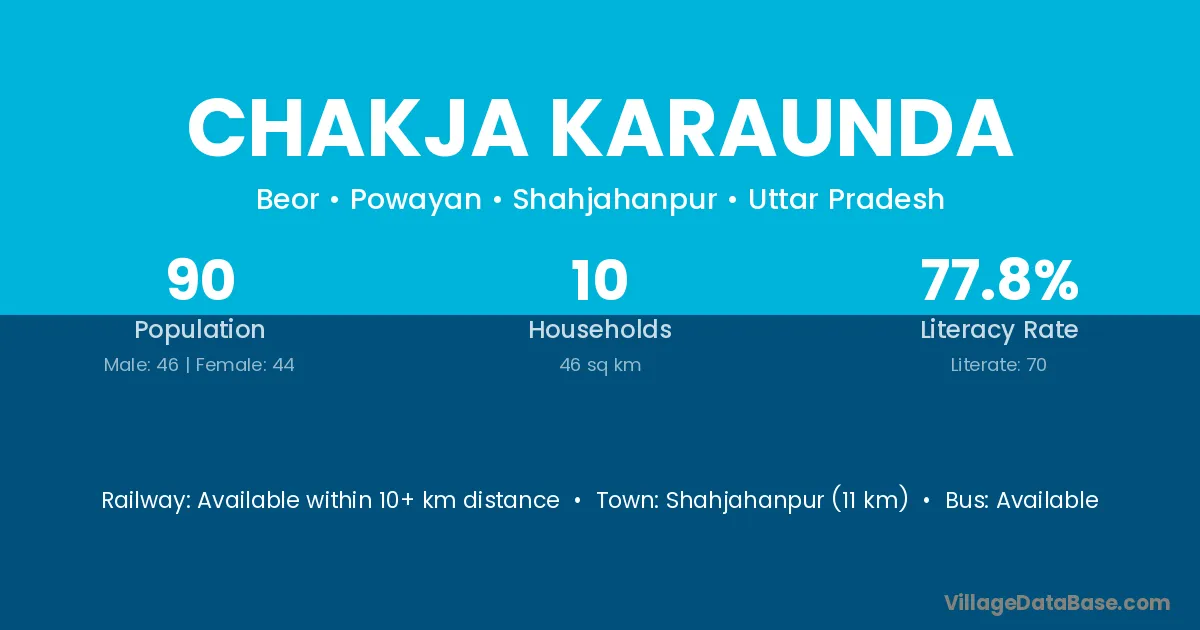 Shahjahanpur (11 km) is the nearest town to Chakja Karaunda village for major economic activities and is located approximately 11 km away.