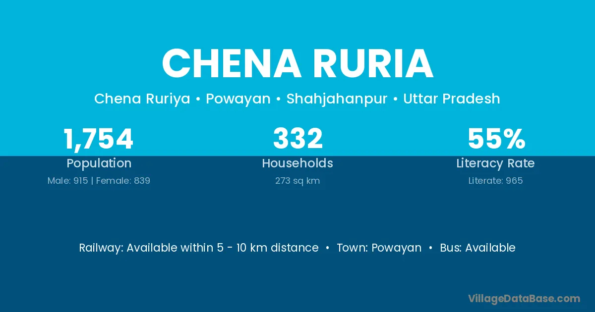 Chena Ruria village has a total population of 1,754 people, of which 915 are males and 839 are females.