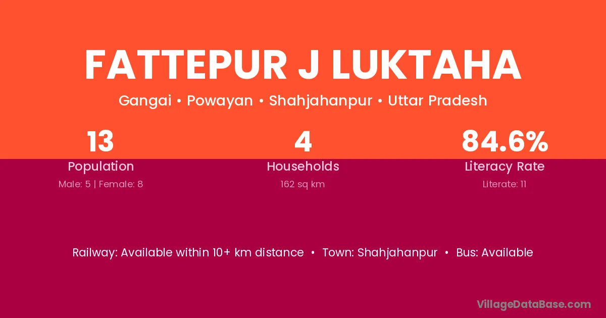 Fattepur J Luktaha village has a total population of 13 people, of which 5 are males and 8 are females.