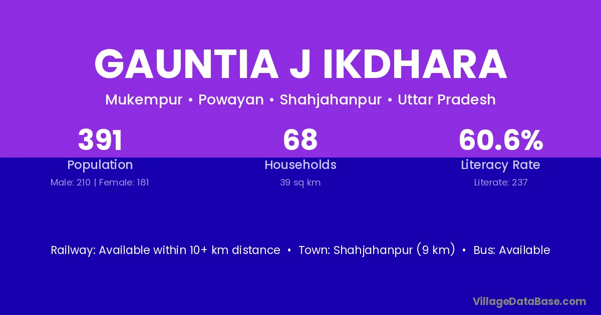 Shahjahanpur (9 km) is the nearest town to Gauntia J Ikdhara village for major economic activities and is located approximately 9 km away.