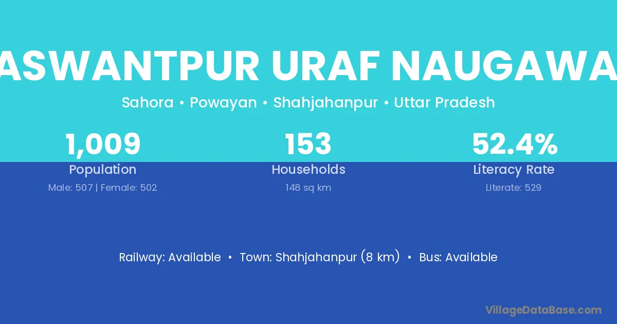 Jaswantpur Uraf Naugawan village has a total population of 1,009 people, of which 507 are males and 502 are females.