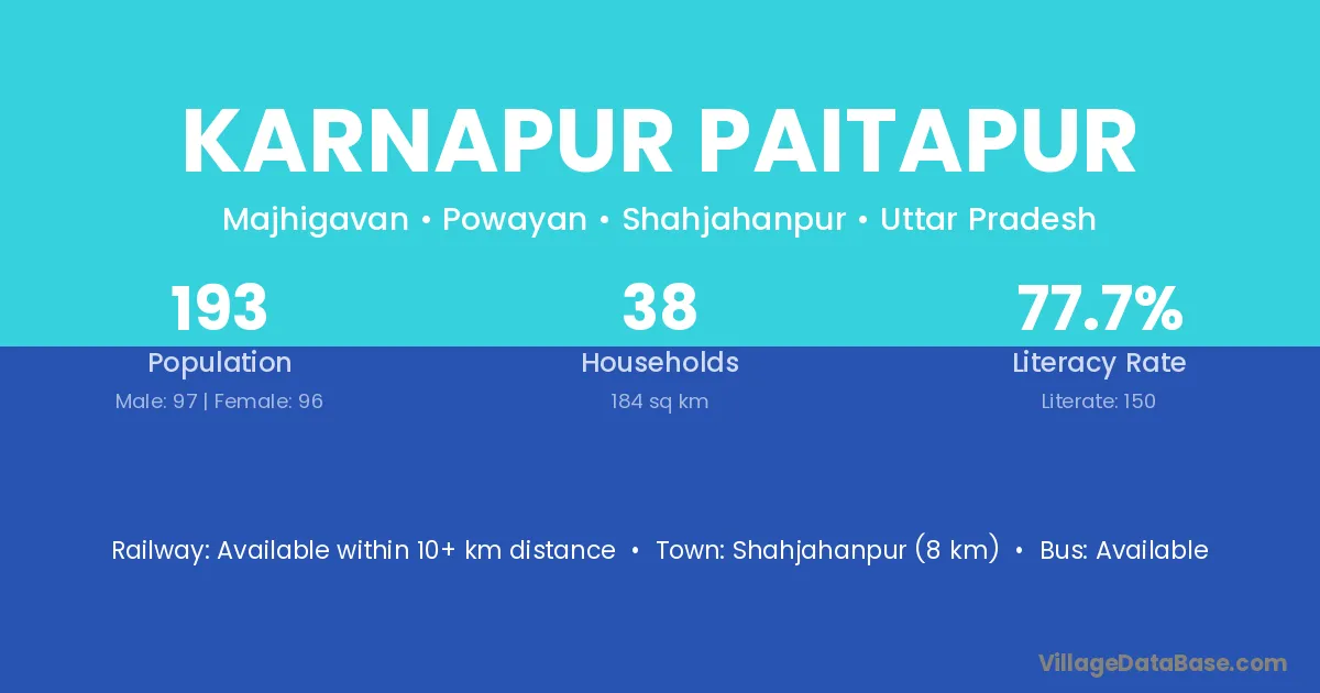 Shahjahanpur (8 km) is the nearest town to Karnapur Paitapur village for major economic activities and is located approximately 8 km away.
