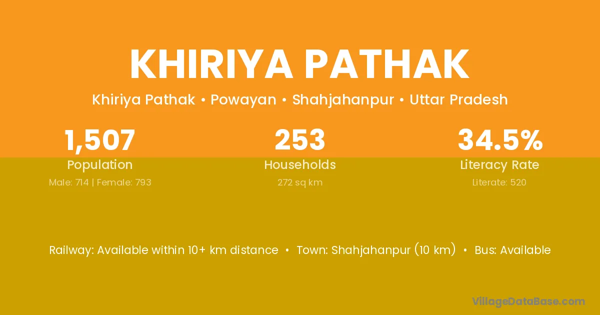 Shahjahanpur (10 km) is the nearest town to Khiriya Pathak village for major economic activities and is located approximately 10 km away.