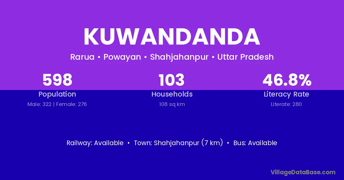 Shahjahanpur (7 km) is the nearest town to Kuwandanda village for major economic activities and is located approximately 7 km away.