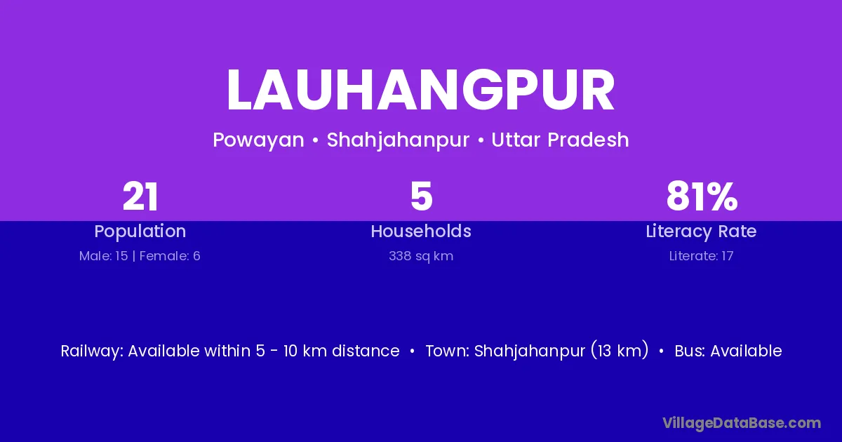 Shahjahanpur (13 km) is the nearest town to Lauhangpur village for major economic activities and is located approximately 13 km away.