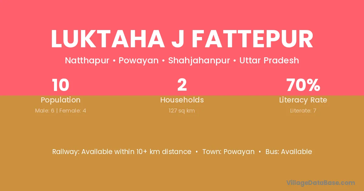 Luktaha J Fattepur village has a total population of 10 people, of which 6 are males and 4 are females.