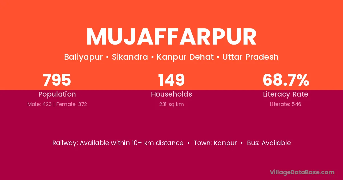 Mujaffarpur village has a total population of 738 people, of which 389 are males and 349 are females.