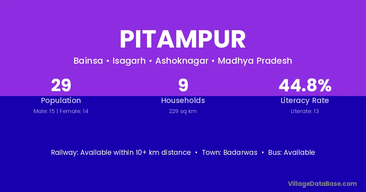 Shahjahanpur (34 km) is the nearest town to Pitampur village for major economic activities and is located approximately 34 km away.