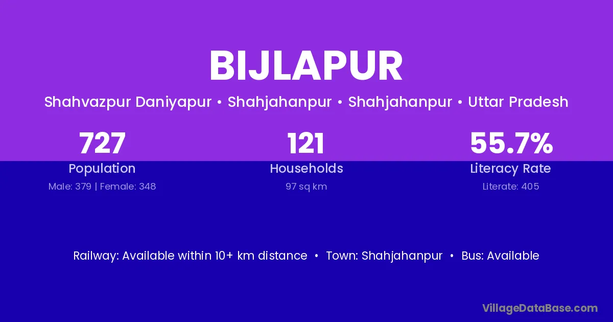 Bijlapur village has a total population of 727 people, of which 379 are males and 348 are females.