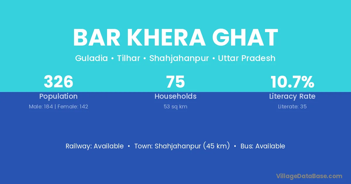 Shahjahanpur (45 km) is the nearest town to Bar Khera Ghat village for major economic activities and is located approximately 45 km away.