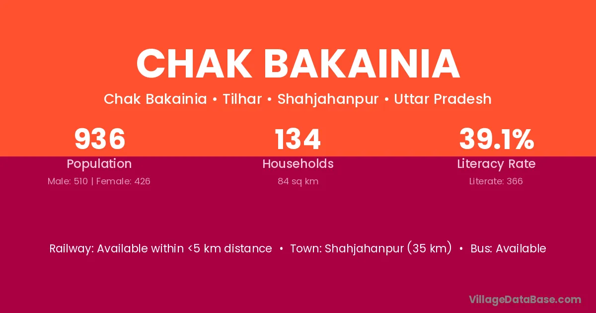 Shahjahanpur (35 km) is the nearest town to Chak Bakainia village for major economic activities and is located approximately 35 km away.