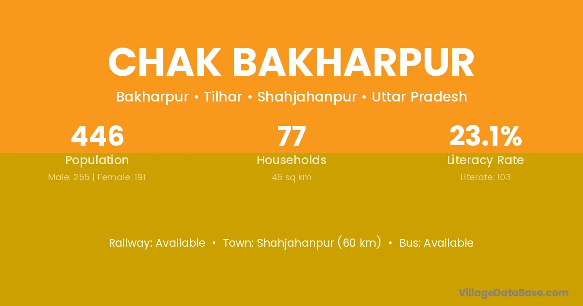 Chak Bakharpur village has a total population of 446 people, of which 255 are males and 191 are females.