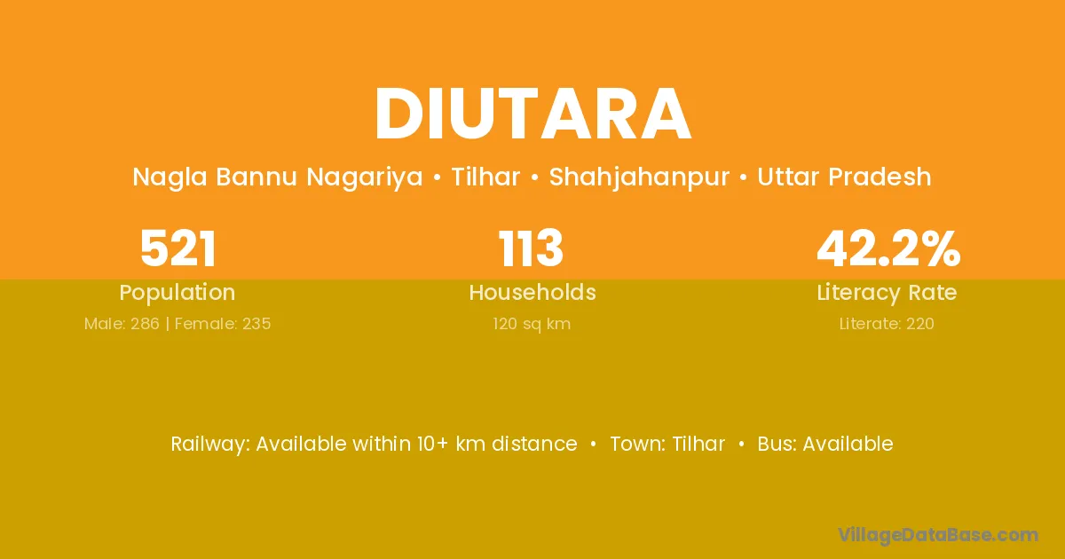 Diutara village has a total population of 521 people, of which 286 are males and 235 are females.