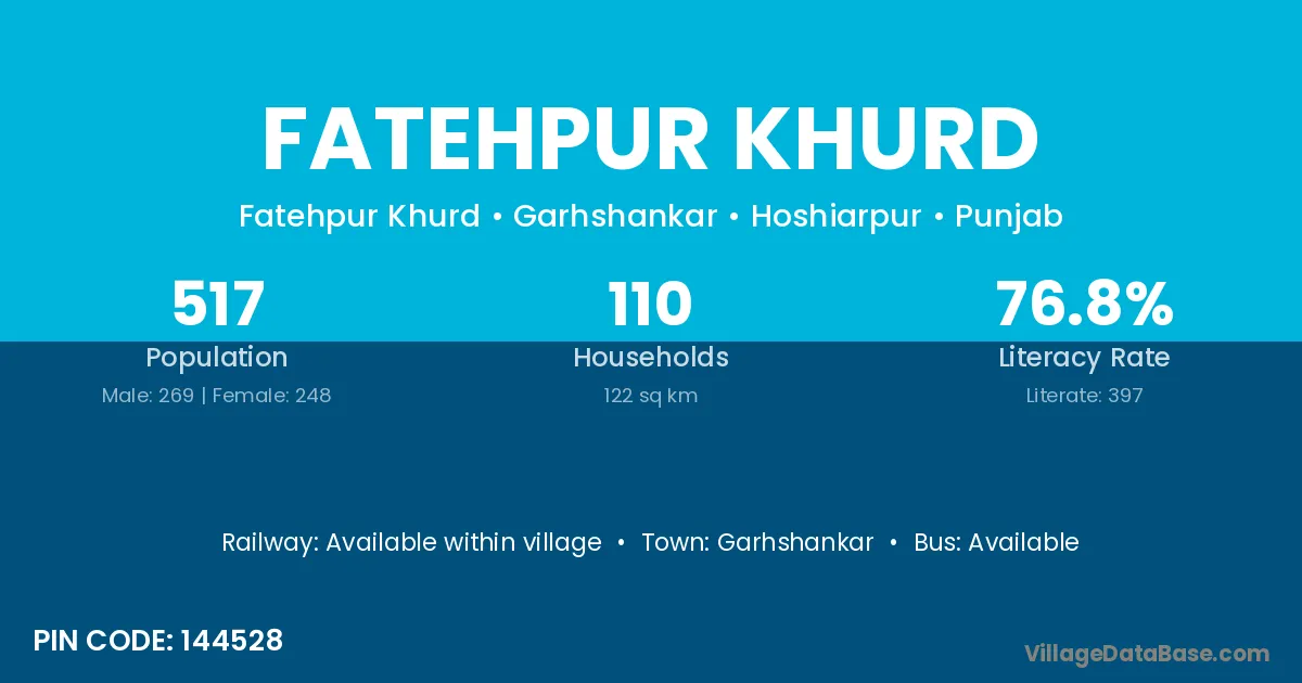 The literacy rate of Fatehpur Khurd village is 42.23%. Male literacy stands at 50.81% and female literacy at 32.05%.