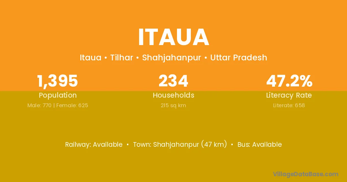Shahjahanpur (47 km) is the nearest town to Itaua village for major economic activities and is located approximately 47 km away.