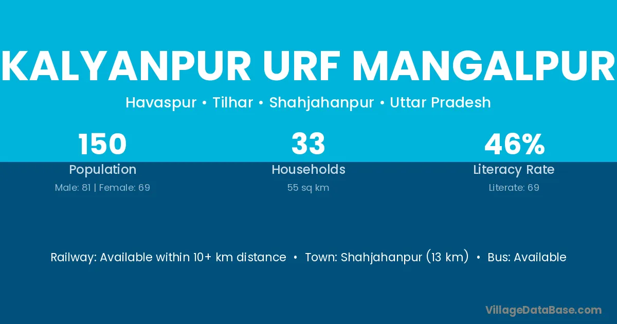 Kalyanpur Urf Mangalpur village has a total population of 150 people, of which 81 are males and 69 are females.