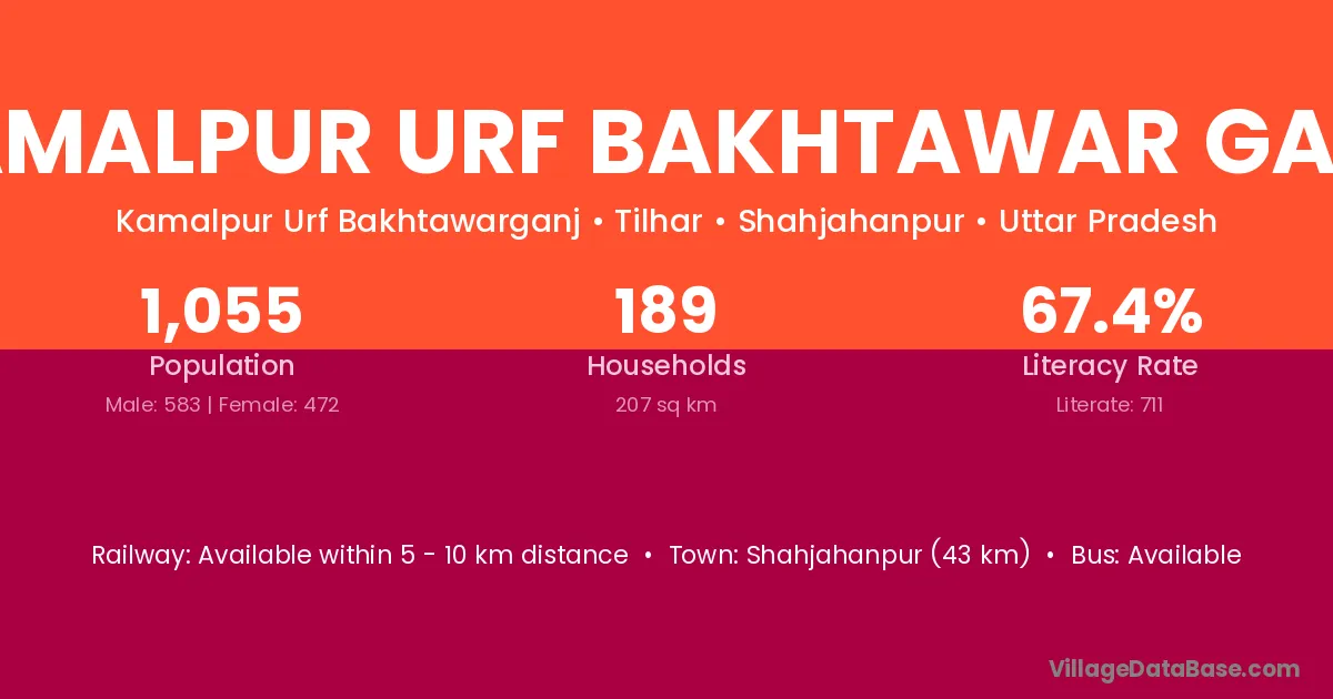 Shahjahanpur (43 km) is the nearest town to Kamalpur Urf Bakhtawar Ganj village for major economic activities and is located approximately 43 km away.