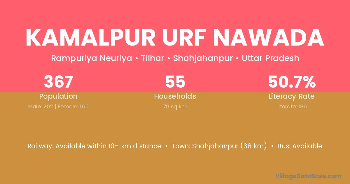 Kamalpur Urf Nawada village has a total population of 367 people, of which 202 are males and 165 are females.