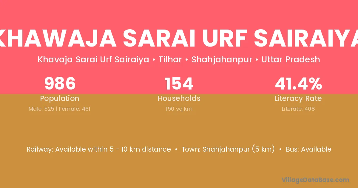 Khawaja Sarai Urf Sairaiya village has a total population of 986 people, of which 525 are males and 461 are females.