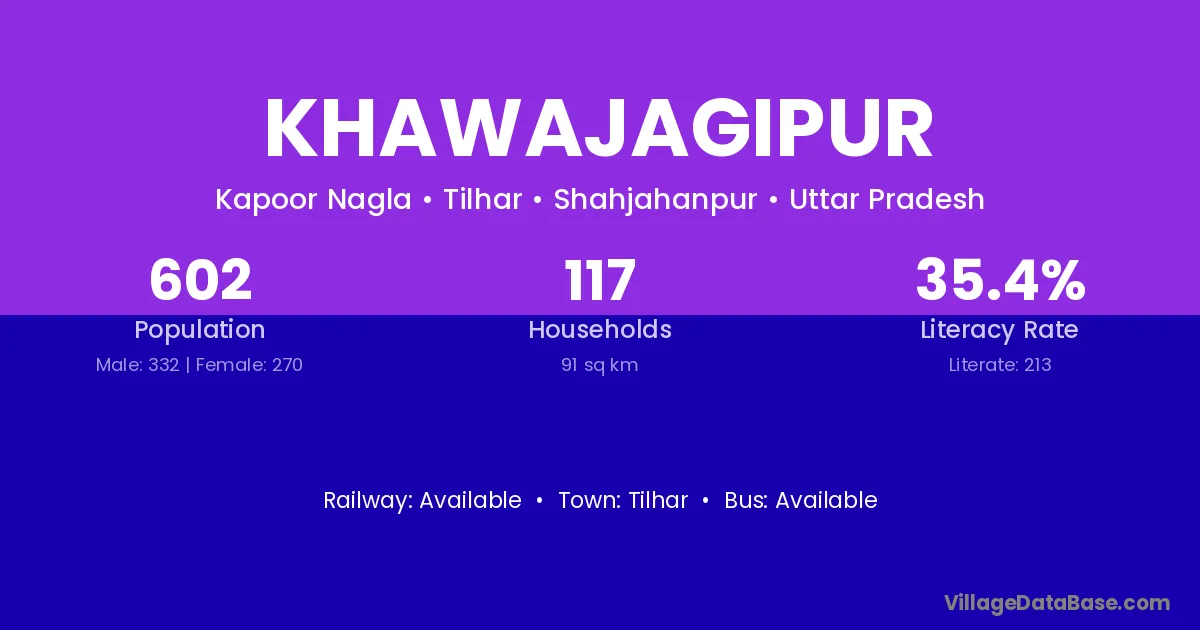 Tilhar is the nearest town to Khawajagipur village for major economic activities