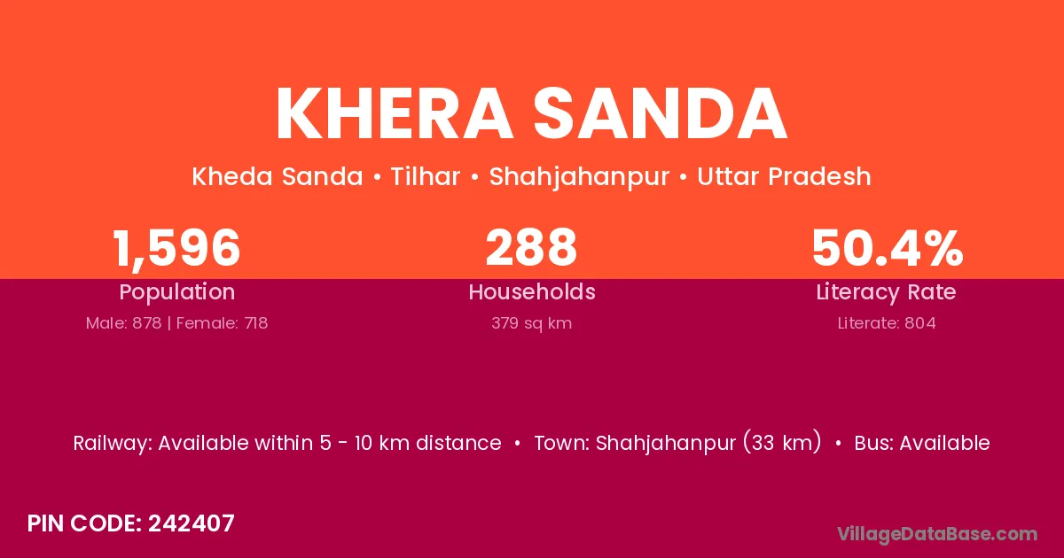 Khera Sanda village has a total population of 1,596 people, of which 878 are males and 718 are females.