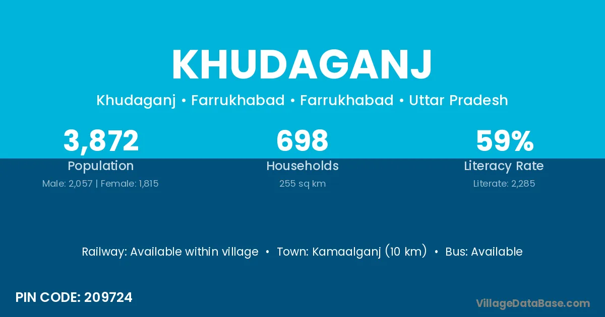 Shahjahanpur (49 km) is the nearest town to Khudaganj village for major economic activities and is located approximately 49 km away.
