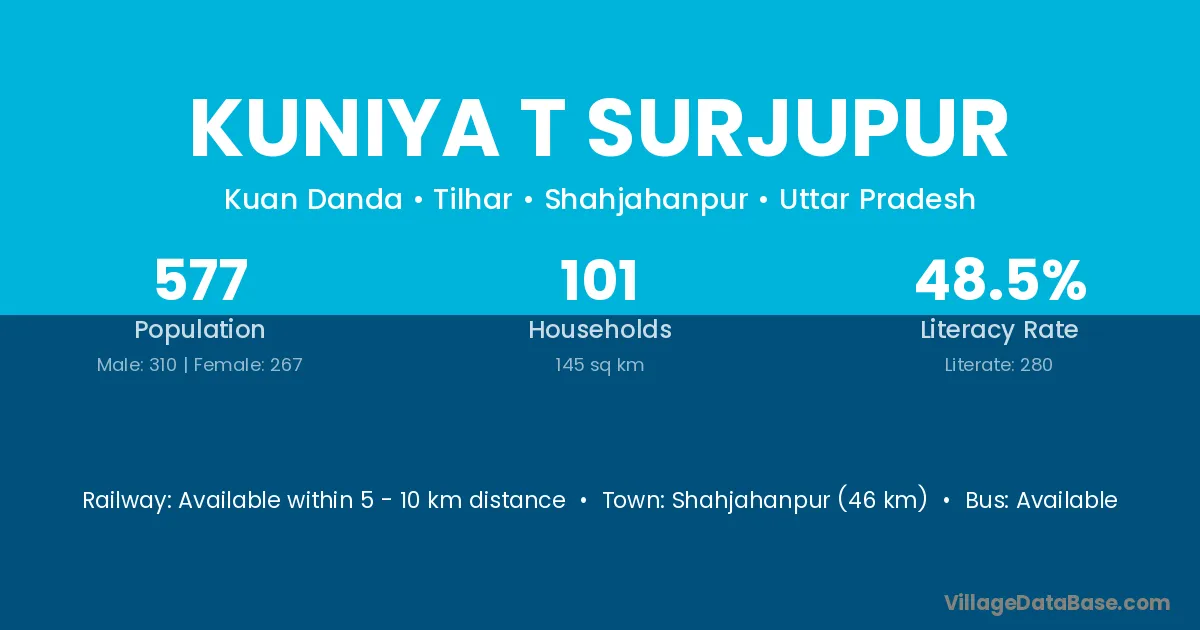 Kuniya T Surjupur village has a total population of 577 people, of which 310 are males and 267 are females.