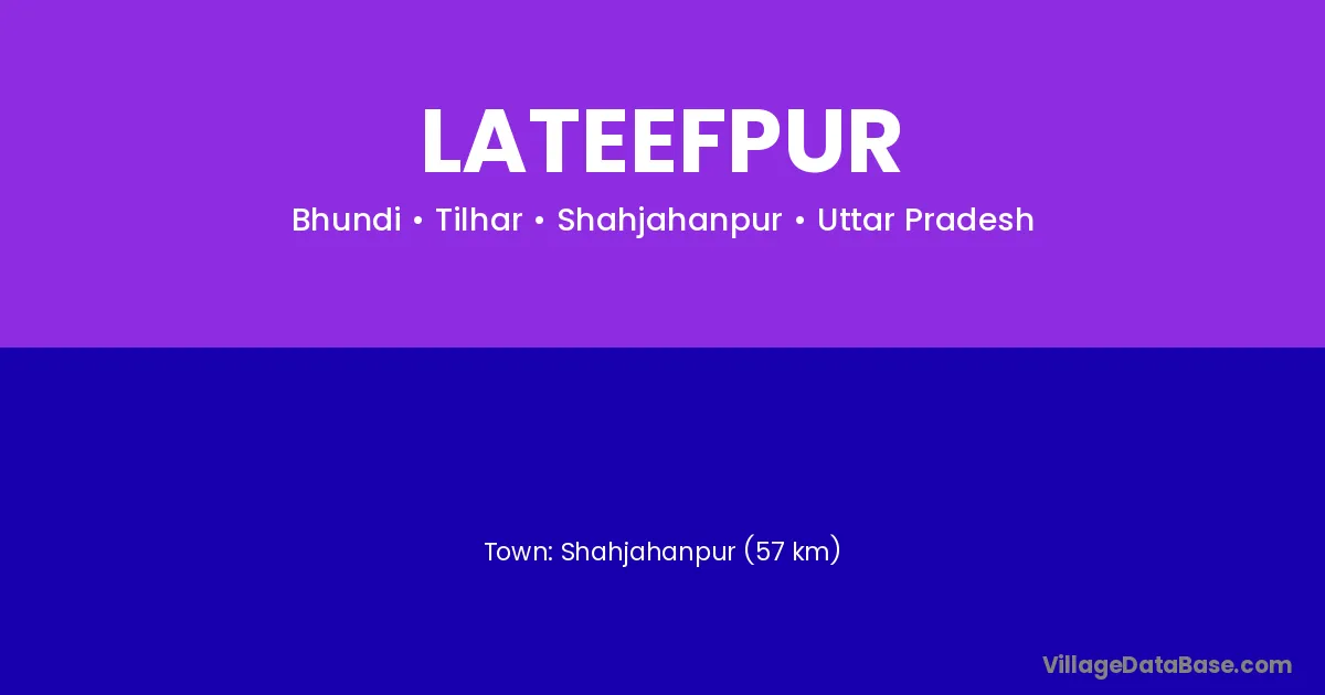 Shahjahanpur (57 km) is the nearest town to Lateefpur village for major economic activities and is located approximately 57 km away.